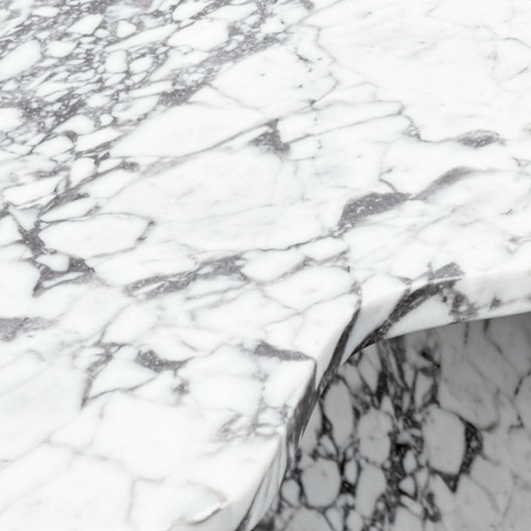 The Well St Wave table is a statement piece carved in sweeping curves from richly veined Calacatta marble, known for its dramatic contrast and timeless elegance. Each table is cut and finished with precision, celebrating the stone’s natural beauty and one-of-a-kind patterning.