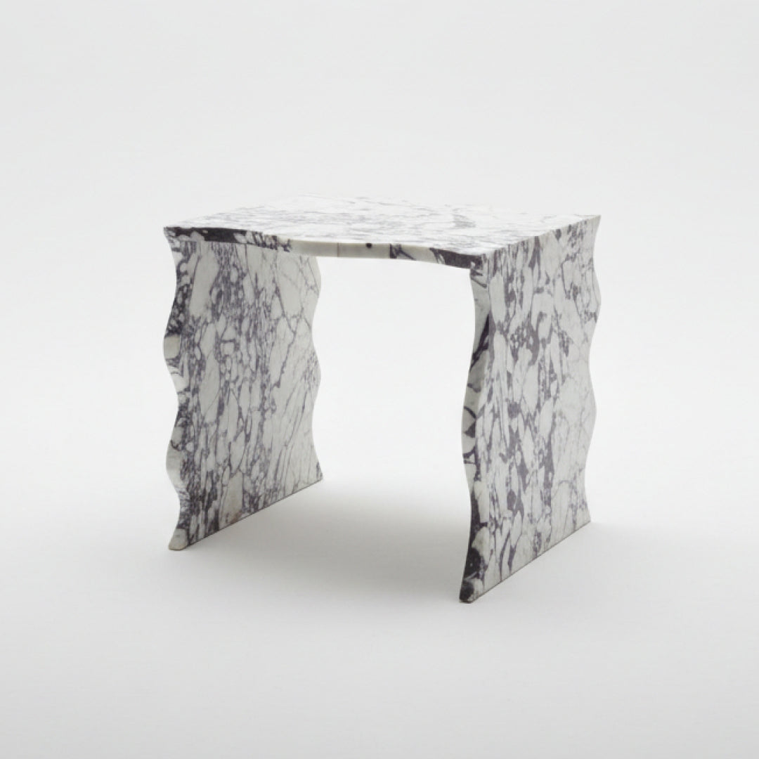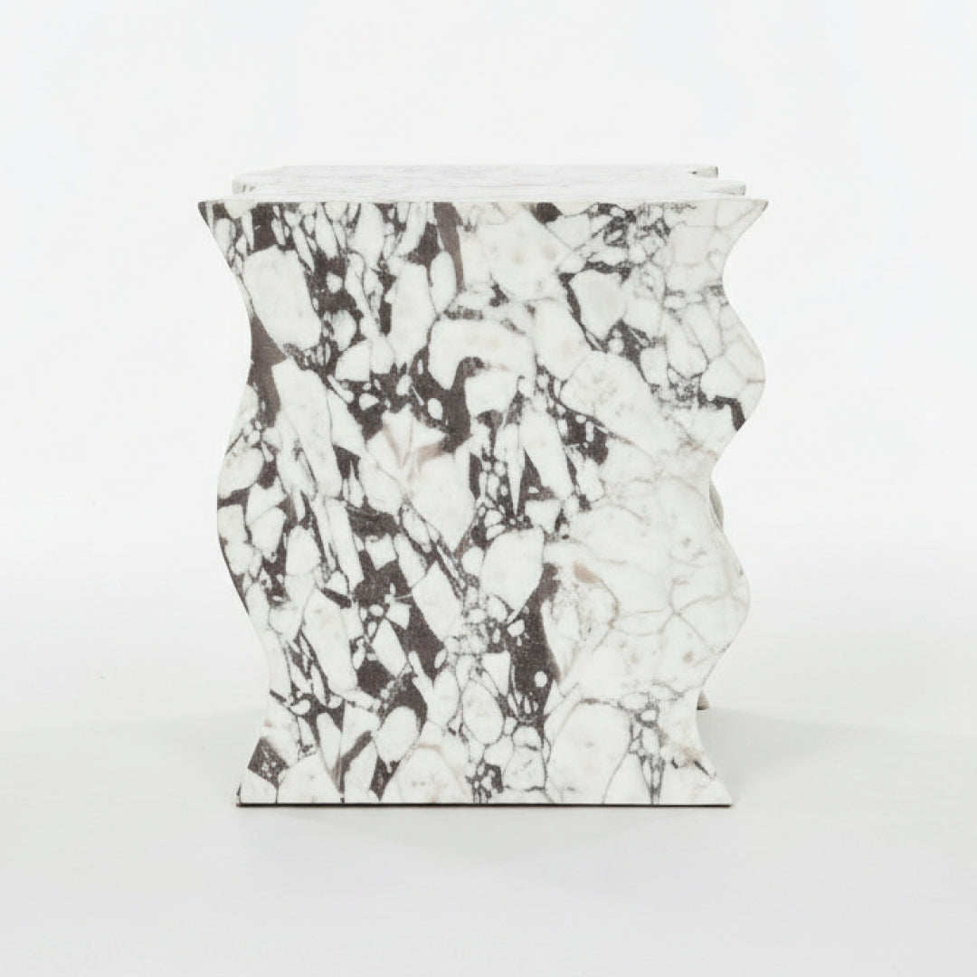 Its fluid, wave-like silhouette softens the strength of the marble, creating a striking balance between organic form and architectural presence. Use it as a side table, pedestal, or stand-alone feature — it's made to elevate any space it inhabits.